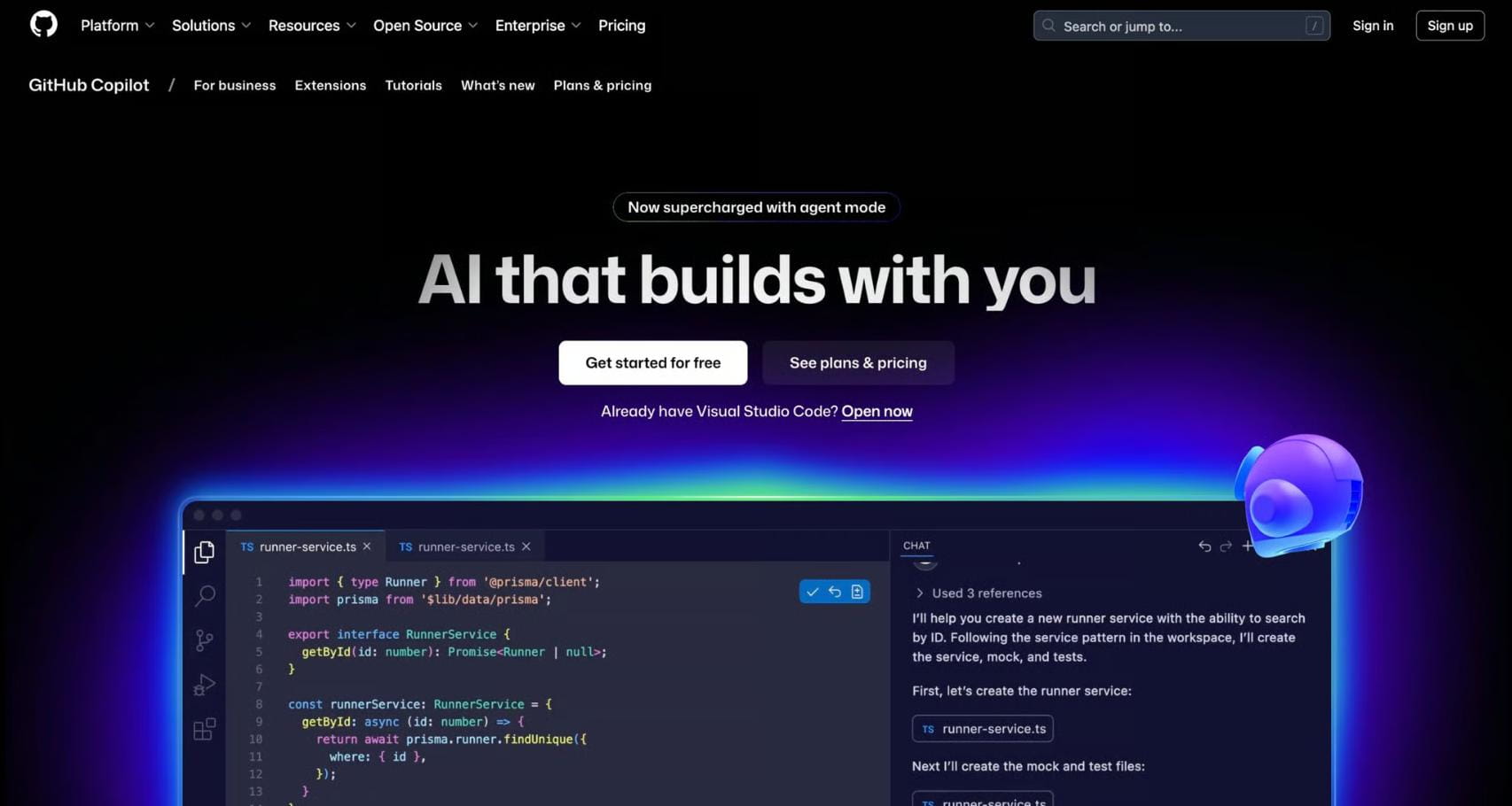 GitHub Copilot直接集成在代码编辑器中。Copilot不会构建整个应用程序,而是通过提供代码补全建议、解释复杂函数以及根据注释生成代码,帮助更快地编写出更优质的代码。
