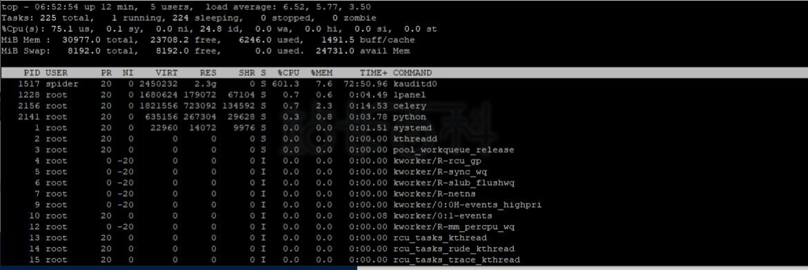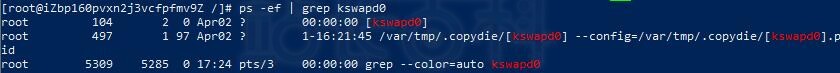 这些进程一直在变化主要是由于kswapd0进程在作怪,占据了99%以上的CUP,查找资料后,发现它就是挖矿进程。针对这种情况,应该作如下处理: