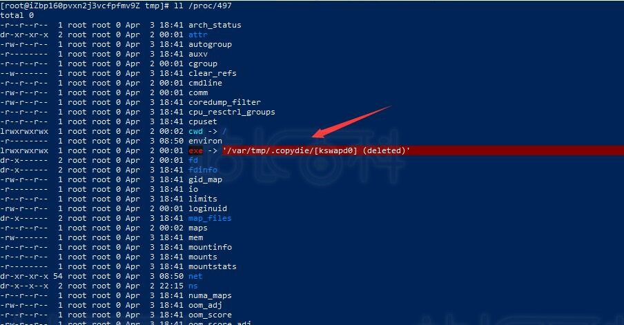 我们来到/proc/目录下查找对应的pid号,即/proc/497。可以在这目录下找到kswapd0进程的详细信息。