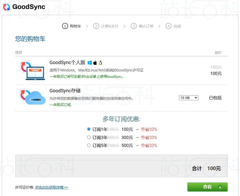 GoodSync Personal适用于Windows、Mac和Linux/NAS系统,支持年付、3年付和5年付周期,均可享受33%折扣优惠。