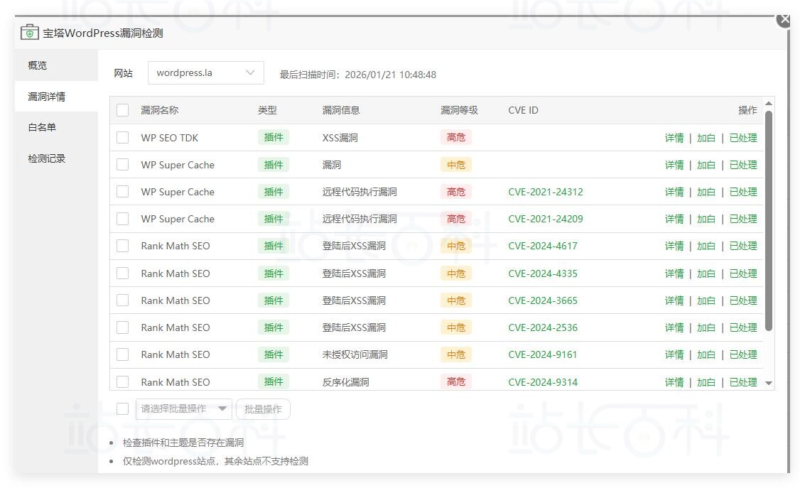 一、宝塔面板WordPress漏洞检测插件主要功能