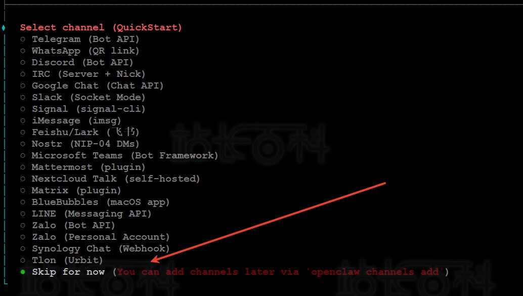 首次部署建议直接选“Skip for now”(后续接入社交平台可更新配置)。