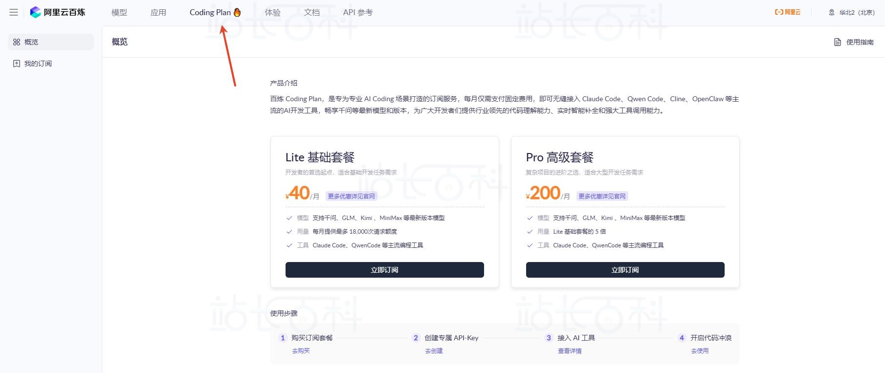 进入阿里云百炼平台点击顶部“Coding Plan”即可购买。