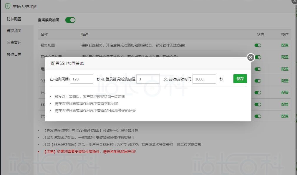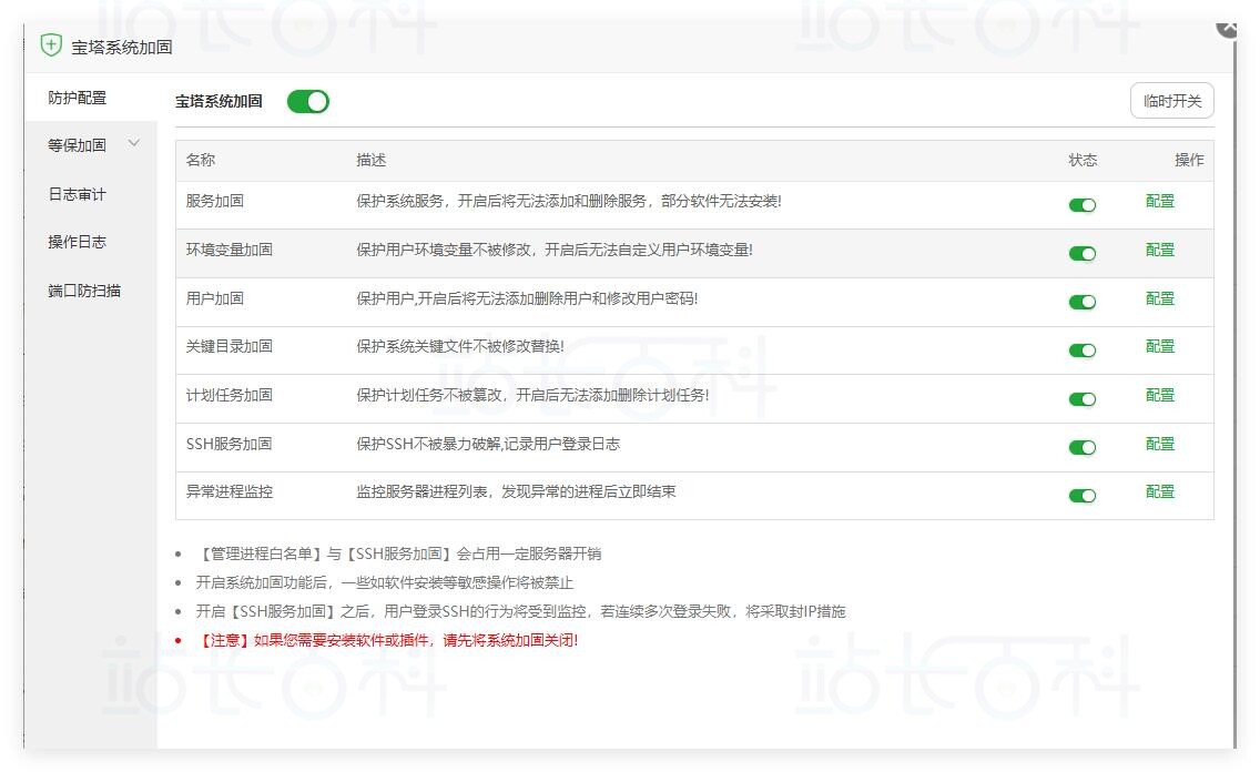 三、宝塔面板加固插件详细功能介绍