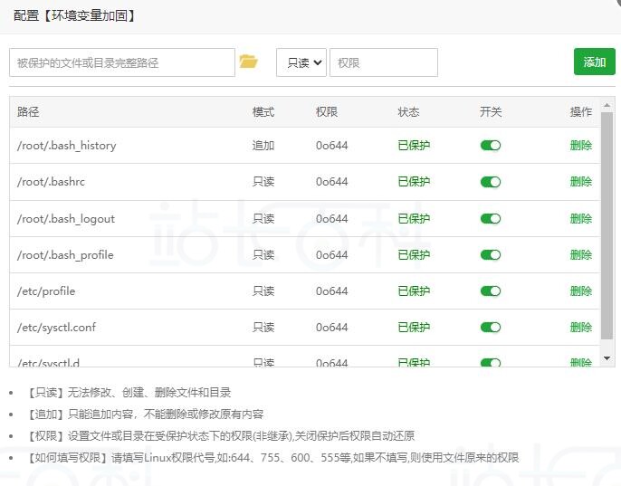保护常见的系统环境变量,不被人恶意修改、新增、删除等操作,分有只读和追加这两种类型。