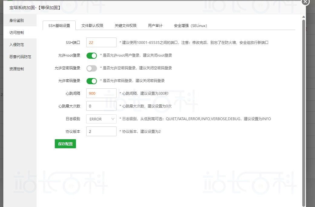 包含了SSH基础配置,文件默认权限、关键文件权限、用户审计、安全增强SELinux。