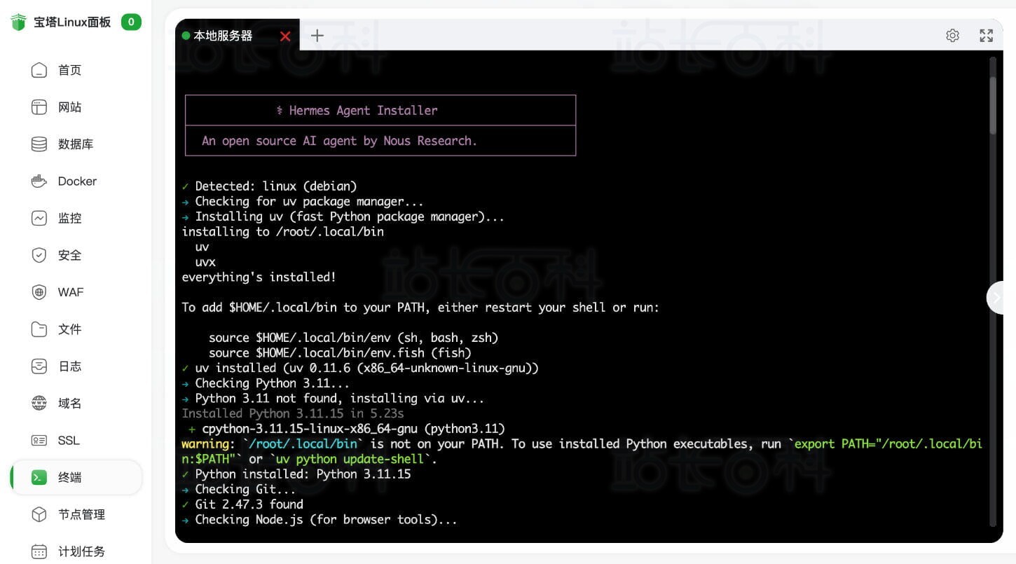 一、宝塔面板安装部署Hermes Agent教程