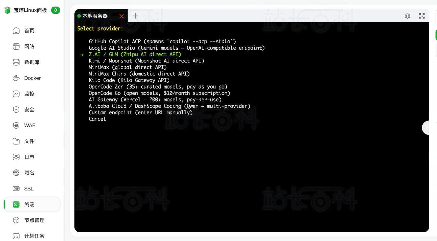 1、打开宝塔面板 > 终端,执行下面这条命令(建议在海外服务器上安装)。