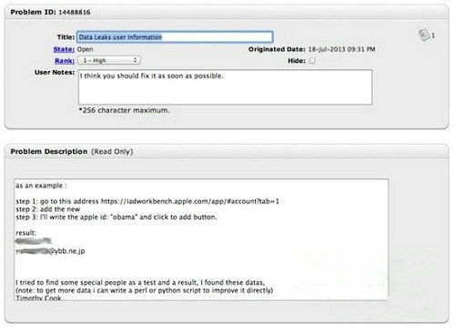 IbrahimBalic表示,在他提交给苹果的13个BUG中,iAdWorkbench上的漏洞最为重要。他说,如果向Workbench服务器提交请求,后者将允许你在一个账号中添加新用户。之后随便填写姓或名,服务器将会返回一个全名及其电子邮件地址。在弄清整个流程的原理之后,IbrahimBalic编写了一个Python脚本,获取了大量开发者资料。