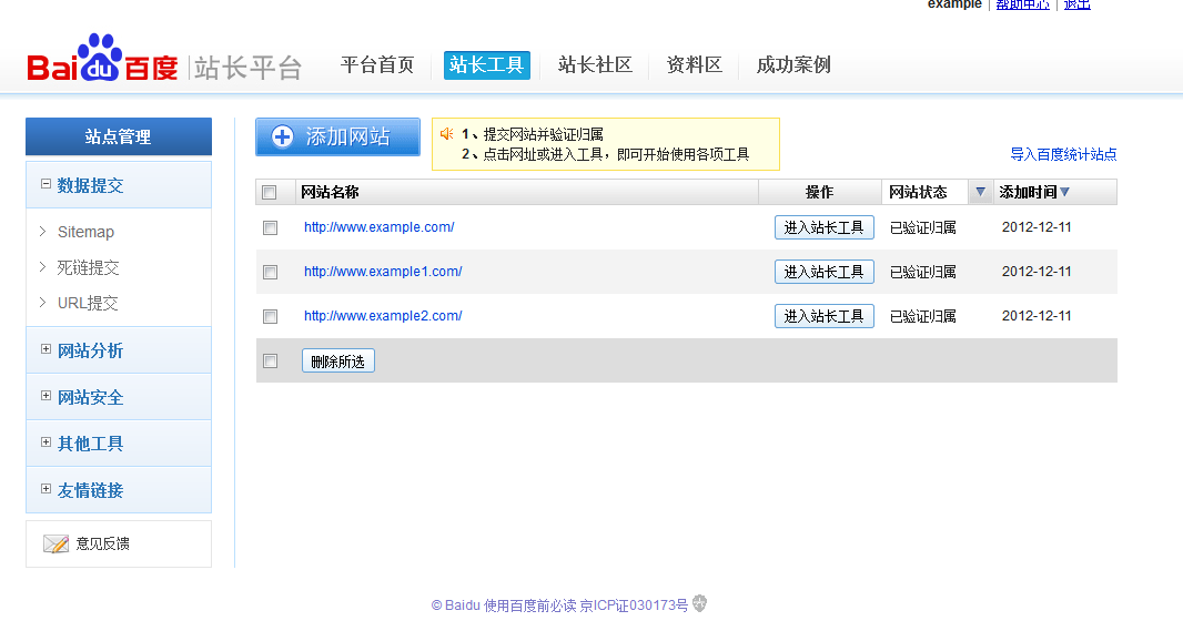 同步完成之后,该账号就可以自由的使用百度站长平台提供的站长工具来帮助网站更好的运营。