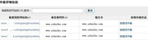 外链查询工具改版后,没有了过去查看被链接页面,链接关键词的分页,取而代之的是变成了一页显示的数据整合。分别分成了链接到您网站的url,被连接网页url,锚文本,拒绝外链状态,四列,站长们可以一眼扫关网站相关数据,在同一个页面中可以进行所有的操作,这种做法确实是可以让数据分析更加直观,而且操作也更加简捷,对网站的外链情况也可以一目了然。但是由于URL都放到一起了,初次体验,看上去有点眼花缭乱的感觉。不过相信习惯了之后应该会更加方便。