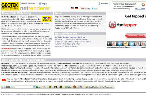 Netrenderer也是用于检查你的网站在IE浏览器中的呈现情况,包括各个常用版本的检测。