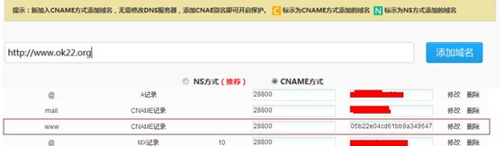 图2:“幸凡学习网”站长使用360网站卫士CNAME接入功能
