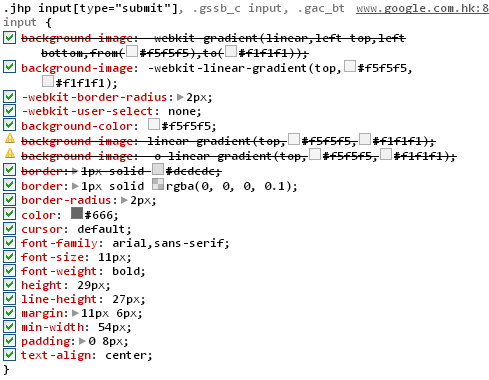 GOOGLE搜索这个按钮没有使用滤镜,IE浏览器就没有做渐变处理,大家都知道GOOGLE是非常在意性能的公司,有些时候为了极致的性能,稍微牺牲一下视觉体验也是可以接受的。再看一下淘宝网“查看更多”的按钮
