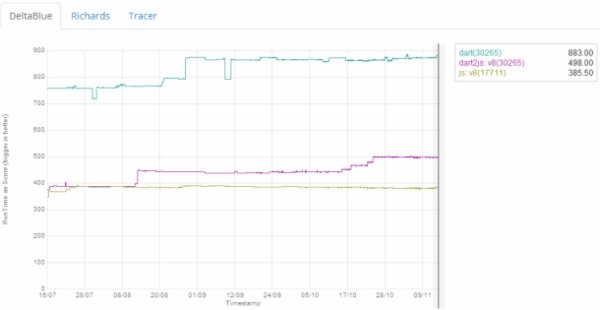 Google设计Dart的目的是在JavaScript语言的基础上,改进编程效率和软件执行效率,并减少大型软件的编程复杂性。而从Google提供的Benchmark评分来看,它确实做到第一点,Dart编写的程序执行效率比JavaScript高出42%到130%。