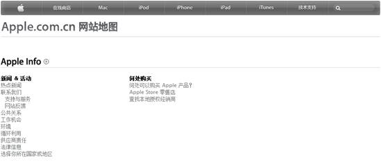 内容地图可以帮助你创造一个更好的网站地图, 例如上图中苹果的网站地图