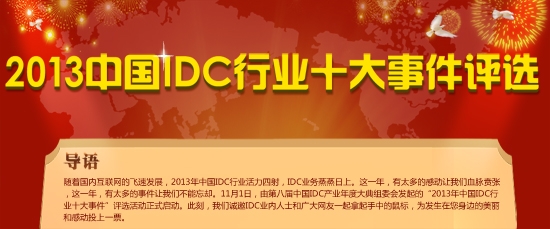 同时也正因为国内互联网的飞速发展,2013年中国IDC行业活力四射,IDC业务蒸蒸日上。这一年,有太多的感动让我们血脉贲张,这一年,有太多的事件让我们不能忘却。11月1日,由第八届中国IDC产业年度大典组委会发起的“2013年中国IDC行业十大事件”评选活动正式启动。此刻,我们诚邀IDC业内人士和广大网友一起拿起手中的鼠标,为发生在您身边的美丽和感动投上一票。