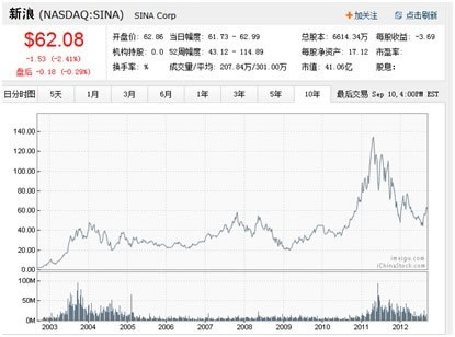 成立于1998年的新浪,立足于门户,微博通讯及相关增值资讯服务,2000年在纳斯达克上市,发行价每股17美元,涨至目前63.6美元,市值42.07亿。