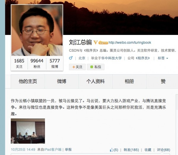 近日CSDN总编刘江在微博中爆料称,马云在一次沟通会上表示,将要大力进军游戏业,与腾讯直接竞争。