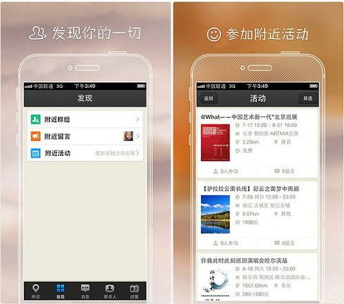 而基于LBS的移动社交应用陌陌则推出了4.1版本,最近一段时间,陌陌的动作很快,先是推出了会员和表情商店的4.0版本,而最新版本中值得一提的就是“附近活动”模块的加入。