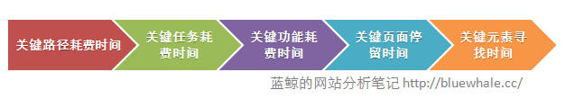 任务时间是指完成某项特定任务或操作所需的时间,对于封闭的关键路径是指在访问者在整条路径中耗费的时间。无论是封闭路径还是开放性路径,任务时间都可以分解为完成任务所需的时间,使用某个关键功能所耗费的时间,在某个页面所停留的时间,以及寻找某个特定页面元素所耗费的时间等等。
