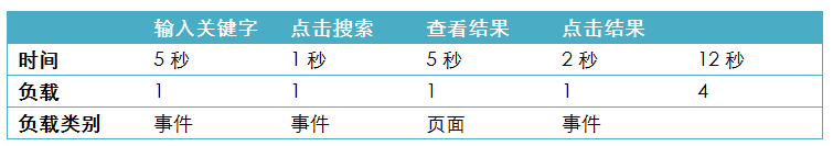 任务负荷是指完成某项特定任务或操作时访问者所需付出的努力。这些努力可能是点击一个链接打开新的网页,从鼠标切换到键盘的动作,切换输入法的时间,也可能是使用键盘输入文字,甚至是寻找关键信息时移动鼠标的次数或眼球移动的次数和距离。当然,目前并没有这么夸张,我们只需简单的记录鼠标和键盘与网站交互的动作就可以了。(如果你有兴趣将这部分的监测进行细化,可以使用文章结尾处推荐的工具进行更加深入的追踪和测试)和前面的两个指标一样,如果是一条封闭的关键路径,那么任务负荷就是指访问者在整条路径中为了完成目的所采取的动作次数。而无论是封闭还是开放性的路径,任务负荷都可以分解为完成任务所需的负荷,使用某个功能所需的负荷,查找特定信息及元素所需的负荷,以及进行判断和决策的负荷。