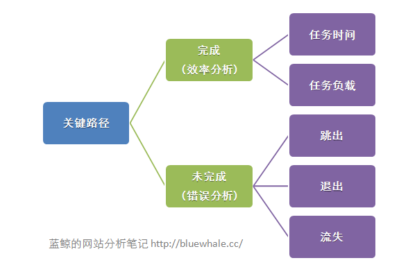 我们对访问者在关键路径中的访问分为了两种情况,第一种情况时访问者通过关键路径最终完成了目的。第二种情况则是访问者没有完成目的。对这两种情况我们也分别采取了不一样的分析方法。第一种完成目的的情况,我们主要通过与前面介绍的指标进行对比来发现路径或任务中可以优化的地方。