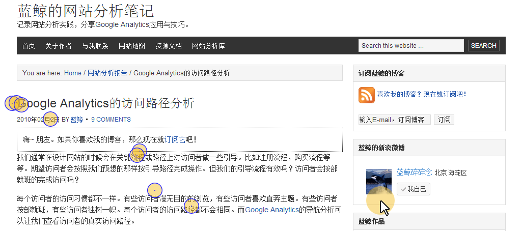 在最后一步中我们使用页面点击热区图和导航路径对访问者的点击情况和点击后的流向进行追踪和分析。