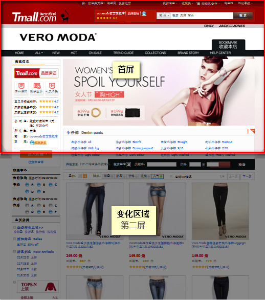 点击店铺左侧类目,首屏内容没有任何变化,天猫和淘宝的店铺普遍存在这个问题,如下图: