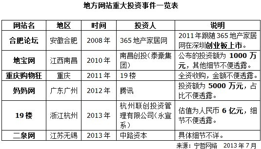 近年来,地方网站快速发展,投融资开始萌发。以下是宁哲网络监测的近年来该领域发生的投融资事件数据: