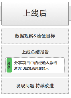 产品前期分析,设计环节,上线总结反馈,基本上涵盖了,从需求到上线的经过的流程,相较于大型UED团队会“轻”一些,适合中小型团队。如果所在公司内部还未有设计流程,可以参考此流程,也可以拿去在这个基础上进行改进。