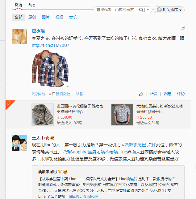 据线人透露,目前这种导购合作还仅限于淘宝全站,也就是说,仅对淘宝商品链接提供这种橱窗式预览,推荐的商品也出自淘宝。线人不愿意透露淘宝是否与新浪微博达成了合作,但我们可以推测,要对淘宝商品做出匹配推荐,新浪肯定做不到,因此这方面必然得到了淘宝的配合;反过来,新浪微博用户所具有的性别、年龄和兴趣特征,也可以作为用户资料回馈给淘宝。