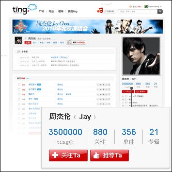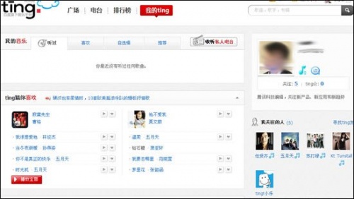 我的Ting!栏目有点类似于腾讯、新浪等门户微博,用户可以关注他人、也可以拥有自己的ting众。我的Ting!栏目分为听过、喜欢、自选辑、推荐几大栏目。