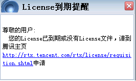 如图8.1 在最下方的“配置license更新通知人员” 添加rtx帐号,如license过期了,在此添加的rtx用户将会在rtxclient收到rtx的消息提醒,如下图: