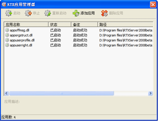 通过菜单选择进入RTX应用管理器,就可以看到一个关于所有应用的统览信息表,示例图7.8如下:
