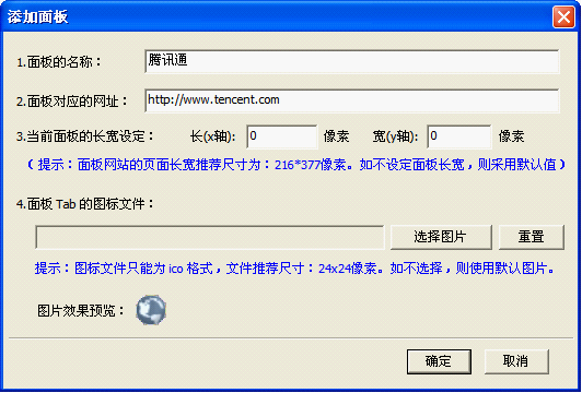 点击“添加”,输入面板名称,链接网址,选择图标,即可确定添加,如图所示