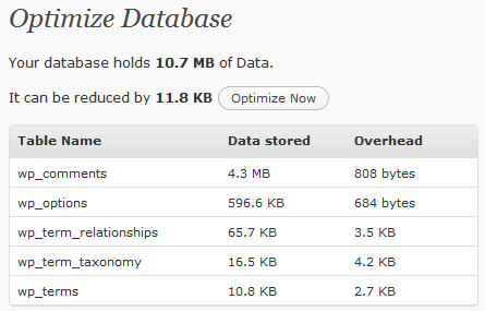 在 WordPress 后台优化 MySQL 表