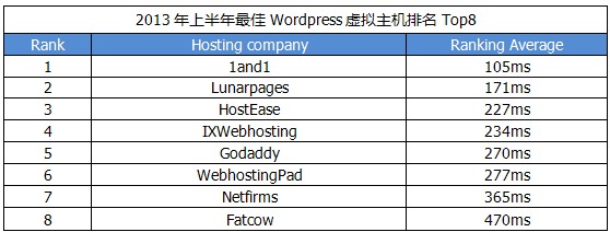 近日,国外知名主机评测机构对2013年上半年国外虚拟主机的综合性能进行评定,公布了上半年最佳Wordpress虚拟主机排名Top8,据数据显示,上半年最佳的Wordpress主机服务商以1and1稳坐榜首之位,而美国Lunarpages、WebhostingPad、IXWebhosting等虚拟主机纷纷入榜并占据高位,以下是榜单TOP前8位的排名情况。