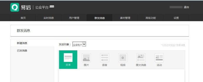 1、 界面几乎和微信一致,降低使用门槛,例如群发功能、素材管理、用户管理等。